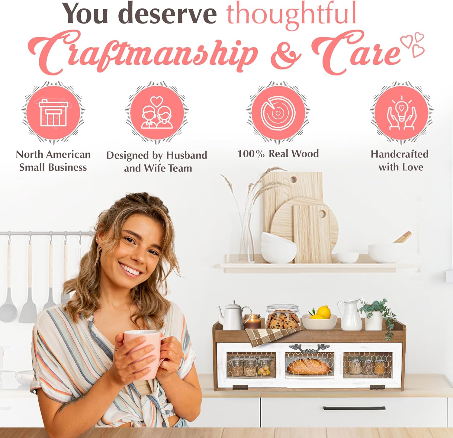 - Handcrafted Quality - Lovingly custom designed by a North American small family business, this countertop storage cabinet is more than just furniture; it’s a labor of love and dedication.